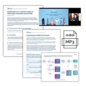 The Debriefing & Mutual Support program is a professional development program that helps you design and implement a tailored, organization-wide support plan. This means that your people will know when, why, and how to best support one another through the unique challenges of your workplace.