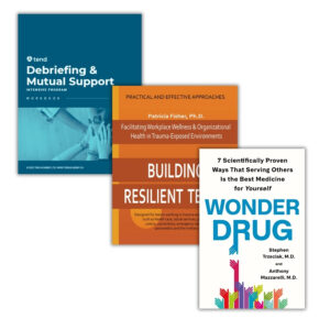 You will receive three books: Wonder Drug: 7 Scientifically Proven Ways that Serving Others is the Best Medicine for Yourself, Building Resilient Teams, and The TEND Debriefing & Mutual Support Manual. These books provide supplementary content, practical exercises, and ready-to-use tools that reinforce and expand on what you will learn during the program.